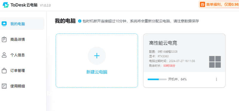 新增云电脑计时机,精准控制使用时间