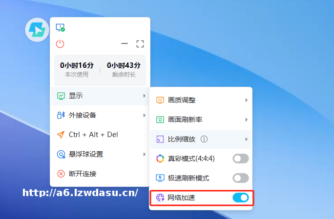 在显示页面,增加了加速的选项,当用户连接云电脑时遇到波动过大或是延迟过大,即可开启加速,稳定连接速度,顺畅打开各种游戏大作。