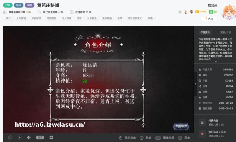 在橙光,《你好,4万条,人气值也破百万,还拿下过**巅峰排行第2名和现代榜的**名。