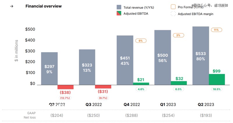 2023年Q2财报显示,二者在收入上的占比大约为36:64(1.93亿美元:3.4亿美元)。此外,Unity在该季度的**成本大约为2.68亿美元,市场营销成本大约为2.09亿美元。