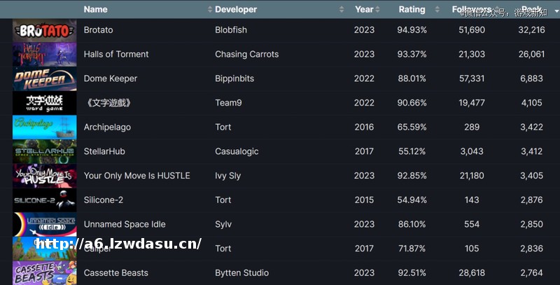 SteamDB上使用Godot开发游戏的****玩家数排行榜