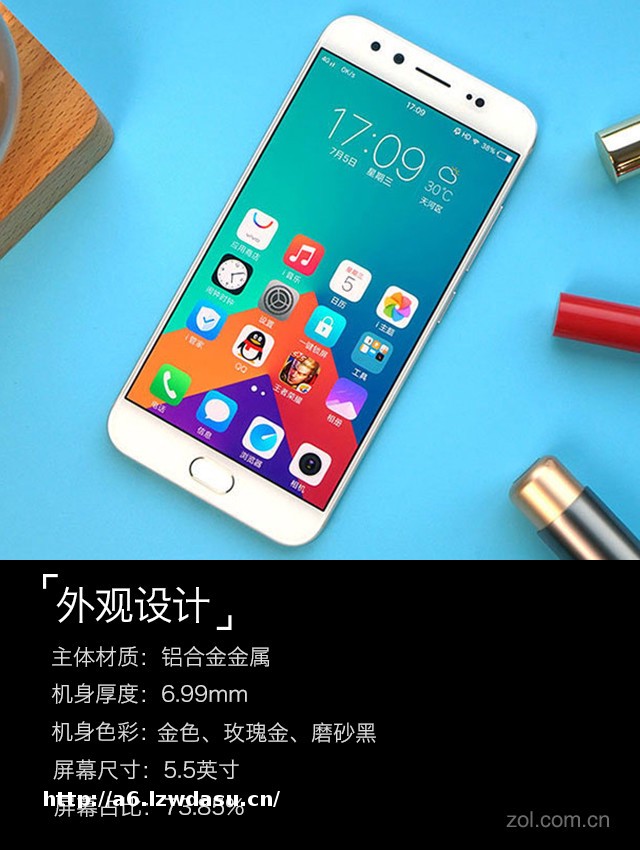 vivoX9s采用COS窄边框技术屏幕,白边+黑边整体边框窄至1.59mm,屏占比高达78.5%,1080P屏幕,在上网、视频、游戏时体验到没有边际的视觉冲击。Home键相比一般的指纹识别面积更大,拥有更好的识别率,Home键左右**了返回键和多任务键,背光灯熄灭时几乎不可见。在外观方面虽然没有太大的改进,但是更轻薄、美观的设计让vivoX9s在颜值上不输其他机型。