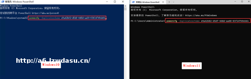 此外,除了开启卓越*能模式外,在上述的“Windows Powershell”界面内,输入特定命令还能开启其他不同模式。例如: