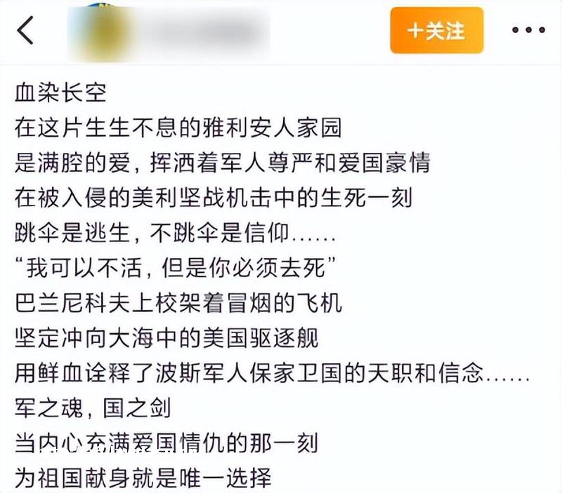 在此之前,国内互联网上就出现了一段“伊朗飞行员驾机撞沉美军航母”的视频,发布者称“伊朗飞行员巴兰尼科夫被**锁定,驾机撞向美军航母同归于尽”。在一些视频平台上,这样的视频被大量传播,很多不明真相的网友都信以为真。