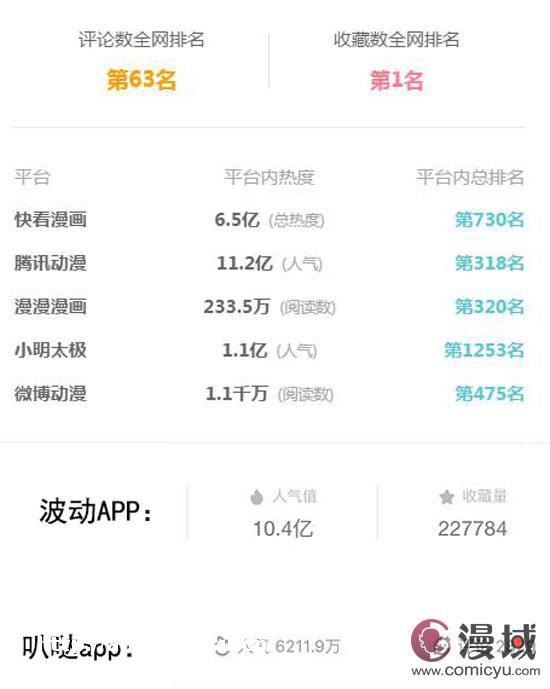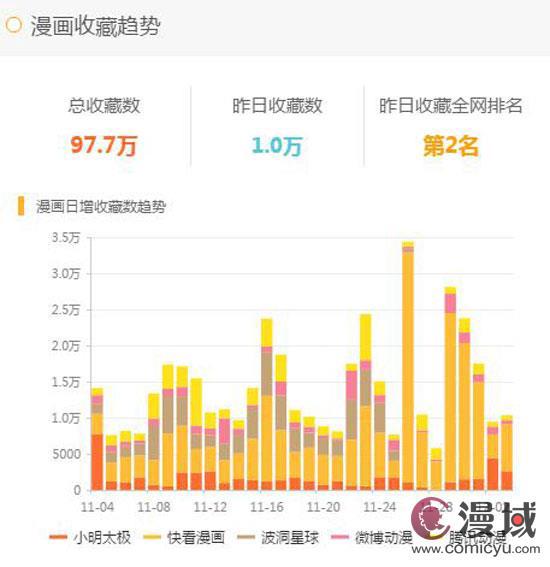 迄今为止,《我的王爷三岁半》全网总收藏97.7万,创下了日收藏书过万的佳绩。其中快看漫画收藏32.6万;腾讯动漫收藏27.5万;波动星球收藏21.3万;小明太*收藏6.8万!全网收藏趋势持续平稳上涨,突破百万近在眼前。