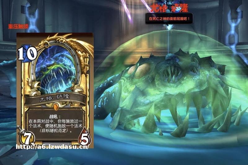 我们以节目效果最为**的尤格-萨隆为例,你在一*对战中间每施放一种法术,就会随机施放一个法术。这卡在**手里可以三炎爆直接秒了对面终结比赛,但到了非酋手里则可能会出现把自己场面清掉、牌库炸穿的乌龙。