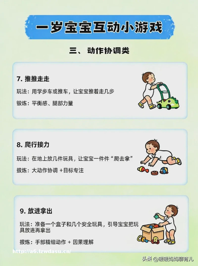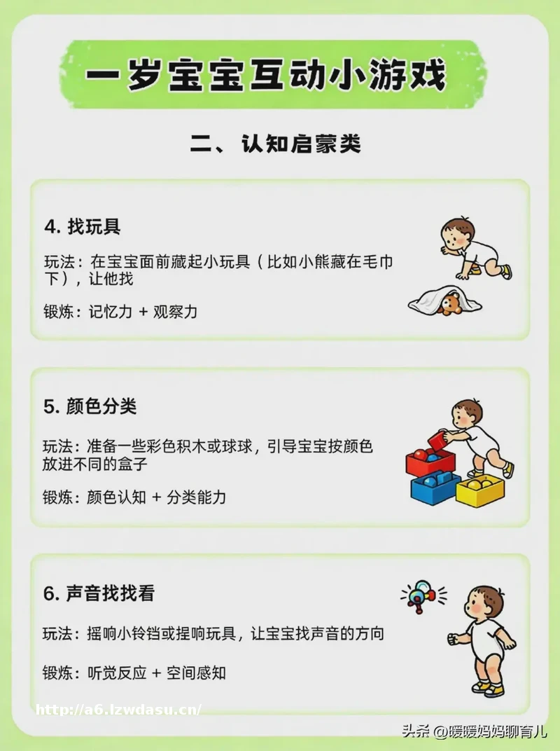 其实1岁宝宝的早教根本不需要复杂的教具和昂贵的课程,这些随手就能玩的小游戏,既省钱又能高质量陪伴娃,比报任何早教班都管用。看着小橙子在游戏里一点点进步,我才明白:**的早教,就是陪娃好好玩。