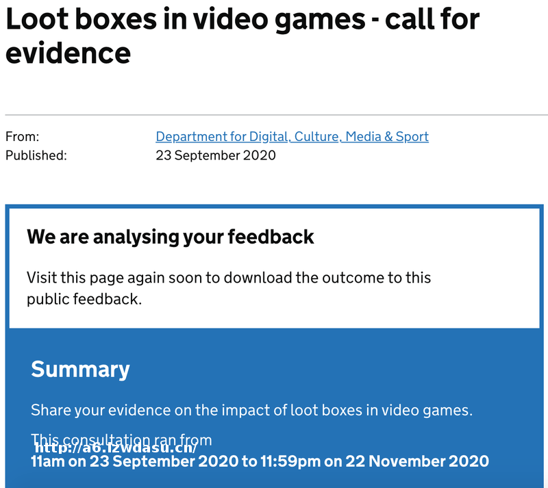 英国方面进行的Loot boxes in video games - call for evidence活动