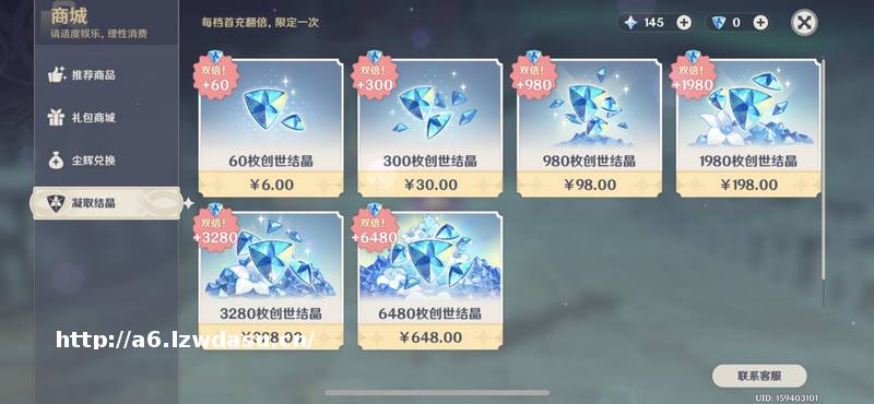 《原神》的付费系统,648元购买6480枚创世结晶,可兑换为6480个原石。1600个原石可以兑换成10个纠缠之缘,用于祈愿10次。