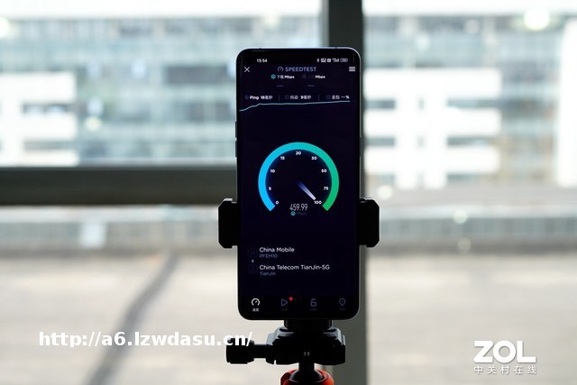 在实际测试中,为了避免主观因素对于测试结果的影响,我们选择了办公区的阳台区域进行测试并将测试机型固定在同一地点的同一三脚架上,以避免不同握持姿势和空间位置对于测试结果产生的影响。设置上,三款参测手机均开启5G功能,5G采用默认设置,不佩戴任何手机壳,并在测试全程关闭WiFi连接。此外需要注意的是,由于不同运营商在不同空间点位的信号覆盖能力有所不同,