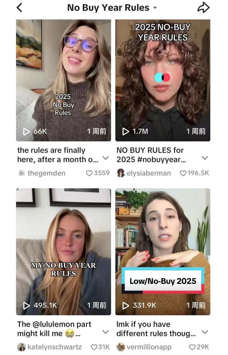“No Buy Year”这个说法源自一位名叫@海莉・埃文斯*主。