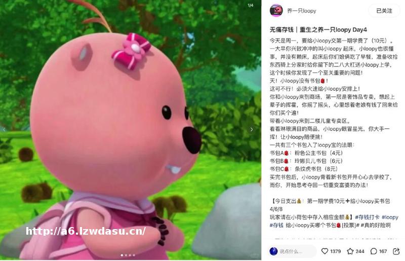 所谓养成式攒钱,就是一场大型**多人RPG游戏。**代表*的就是小红书的@养一只loopy。