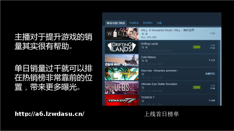 但从结果来看,主播宣传游戏对游戏的销量真的很有帮助,单日销量过千就可以排在热销榜非常靠前的位置,更容易出现在首页推荐,而且带来更多的曝光。这个新品与热门商品曝光是很大的。