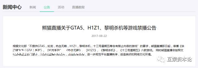 靠脏话和裤子在游戏**平台上长期霸占**的《H1Z1》太过疯狂。今年7月和6月,**文化部分别发布《关于GTA5、H1Z1、黎明杀机等游戏禁播》的公告,明确指出即日起在B站和熊猫TV上停播GTA5、H1Z1等六款游戏。
