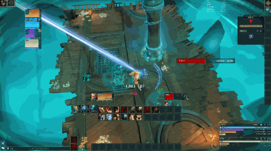 比如说在与海妖辛瑟拉的战斗中,玩家需要在它开始“唱歌”之前,将自己固定在场中的桅杆上,以避免在歌声的吸引下跳崖;而在与双子BOSS“奴隶贩布鲁尔”与“血肉掮客德拉祖尔”的战斗中,玩家不仅要躲开场上不断挥舞的镰刀风暴,同时还要在“血肉掮客德拉祖尔”施放旋涡之前,站在“奴隶贩布鲁尔”的藤蔓陷阱中,借助其减速的效果来保证自己不被吸进旋涡之中……