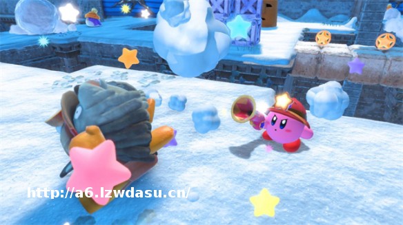 本作总计有 31 个关卡,每个关卡中包含 5 个任务,此外还包含各种收集品。利用卡比的吞噬能力吸入特定的敌人,我们立刻就能获得相应的能力,以此才能解决关卡中的不同敌人或解开谜题。