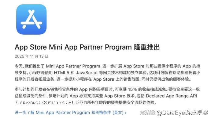 简单来说,结束了一场长达数年的“冷战”。 小程序“苹果税”即将落地 意味着一个重大的政策转向。具体来说: