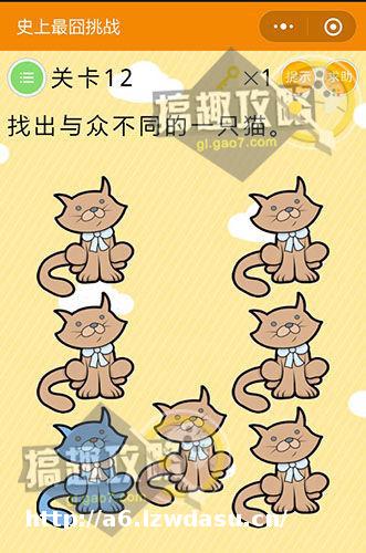 将左下角的猫移开,就能看到与众不同的蓝猫了。