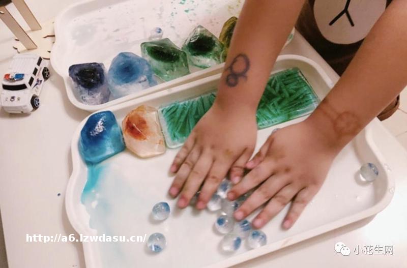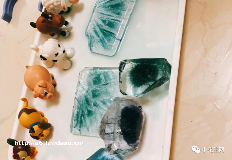 儿子洗澡时,我给他玩冰块,还把小动物冰封进去,带娃观察是放进澡盆里的冰块融化得快,还是放在室温下的冰块融化得快。