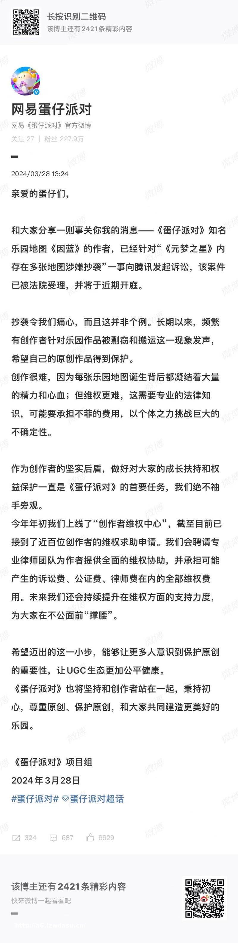 随后,“抄袭令我们痛心,而且这并非个例。长期以来,创作很难,因为每张乐园地图诞生背后都凝结着大量的精力和心血;但更难,这需要专业的法律知识,可能要承担不菲的费用,以个体之力挑战巨大的不确定*。”