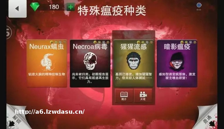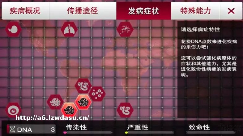随着**逐渐蔓延,就可以通过收集DNA点数,从传播途径、发病**和特殊能力三个方面对**进行升级。