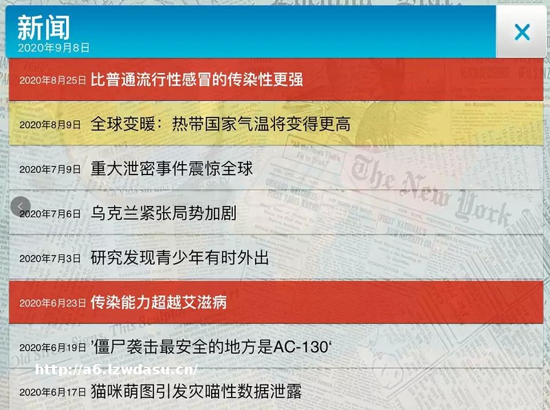 除了三大数值的平衡取舍外,游戏模仿的是真实世界,在News菜单中会滚动播放各类随机**。原本硬糖君对这些**不太在意,以为只是为了营造真实感随便搞的文案。其实,这些随机**往往会暗示接下来瘟疫传播的重点方向。