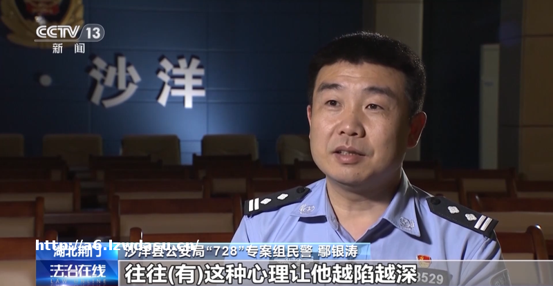 沙洋县***“728”专案组民警 鄢银涛:温水煮青蛙一样的,小熊越输越想翻本,往往有这种心理,让他越陷越深。