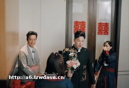 既然来了,三位明星也丝毫没有偶像包袱,自然又热络地融入了接亲环节。吴彦祖直接单膝跪地,趴在地上认真帮新郎寻找被藏起来的婚鞋,贴心程度满分;代旭则戴上一顶喜庆的小红帽,自动化身“气氛组组长”,一边分发饮品一边高喊“嫁给他”,把热闹值推到新高;井胧则举起手机,全程记录下这难忘的暖心瞬间。最后,三人一同为新人送上了“一见倾心”等真挚祝福。