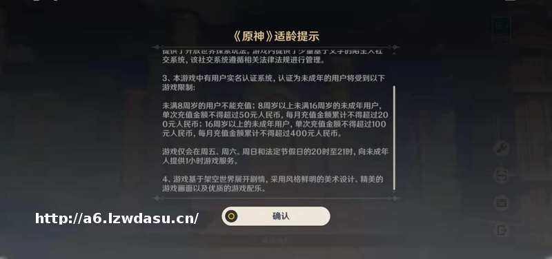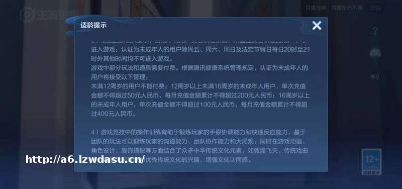 澎湃新闻注意到,六款游戏在游戏登录界面均有适龄提示,在适龄提示里,网游平台会对未成年人账号的充值数额进行限制。六款游戏对未成年人充值限制要求并不相同:腾讯公司旗下的《王者荣耀》与《和平精英》两款游戏的**消费年龄为12周岁,而其他四款游戏的**消费年龄均为8周岁。