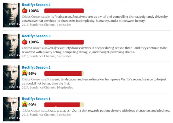《守望尘世》并非**被忽视的高分剧集。更惨的是《昭雪》(Rectify),谁能想到这部拍了四年,后两季在“烂番茄”上的好评率达到****的剧集,不论是幕后主创还是演员,居然连半个艾美奖提名都没拿过!遥想若干年后,要是评选最受艾美奖冷落的****0剧集,它一定榜上有名。