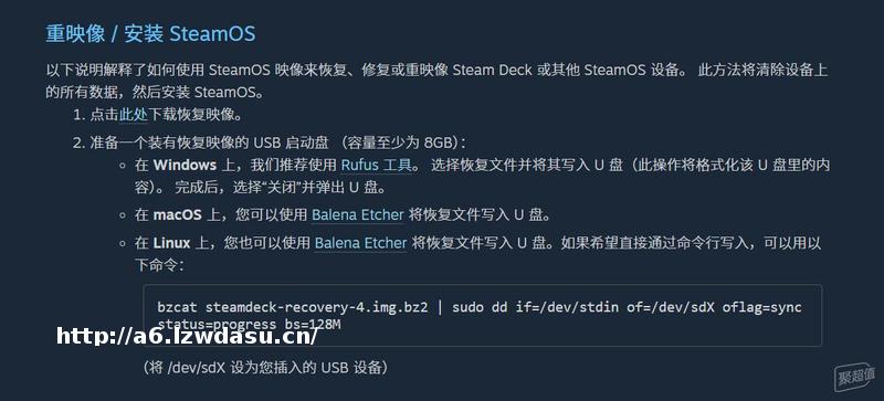 **cOS 或 Linux 用户则可选择 BalenaEtcher,以便后续将 SteamOS 镜像写入 U 盘进行系统安装。