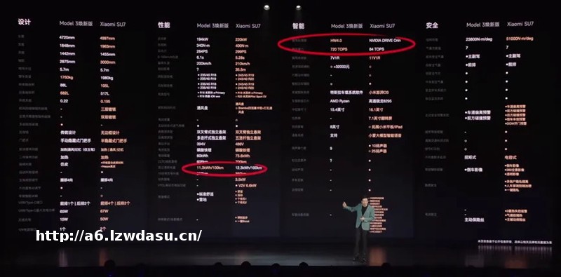 在价格公布环节,小米对了大众认知度**的特斯拉Moele 3,并拉出了详细的对比表单,给足了细节。