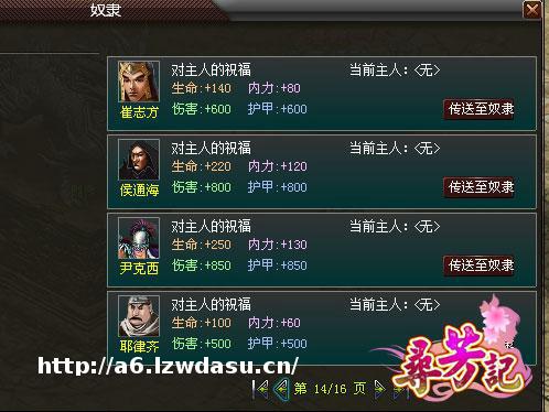 玩家通过活动获得(梅超风、耶律齐)这样的名人当奴隶。除了有大量的奖励,还能给自己带来更多的属*加成,多一个或者少一个,都会影响自己的江湖地位。奴隶相当于给玩家多塑造了一个生命。