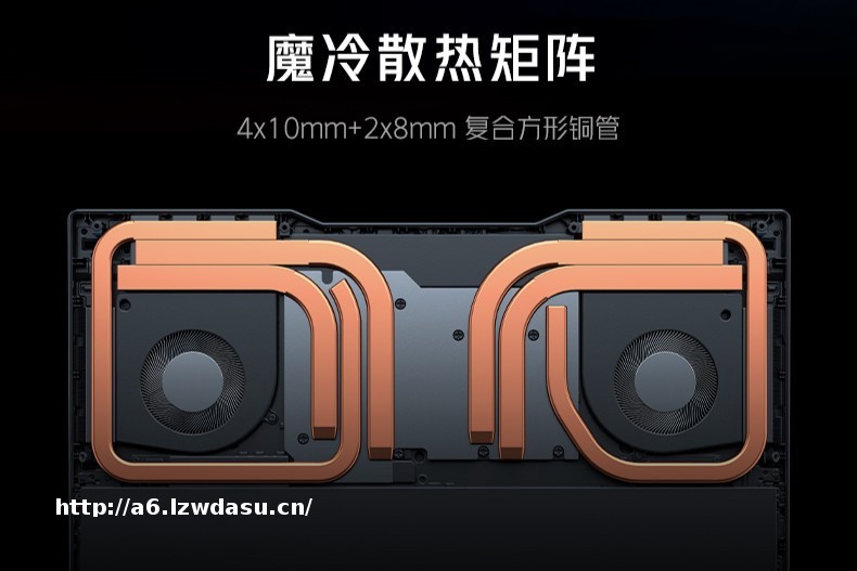 魔冷散热架构2.0由四部分组成,首先是3D冰封复合式热管2.0。通过4+2矩阵式排布的超宽**热管提升热源接触面,并采用**定制方形铜管,相比传统热管接触面积提升10%,导热效率提升30%,能将核心热量快速散出。