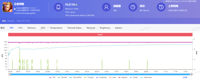 说的再多,不如一试,我们直接看实际的游戏帧率表现。一加 15T是手台支持《》144Hz+**画质同开的小屏手机,测试30分钟轻松达成全程满144帧,无论是大型团战还是对线,都没出现明显的画面卡顿,这对于强调操作的MOBA类游戏相当关键。