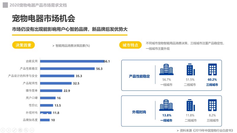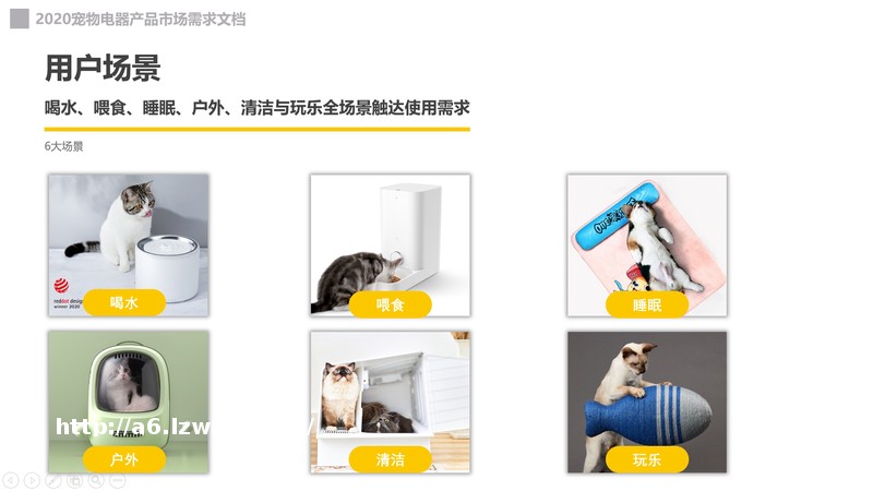 宠物行业在2020年中,整体呈现上升趋势,其中围绕猫的生态产品正在兴起,猫经济成为宠物用品市场新的增长点,所以我建议从猫的智能宠物电器的细分市场切入。