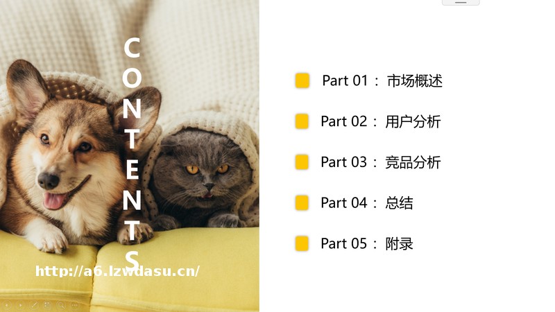 4)分析整个宠物市场这个基本体的是处于上升还是下降,在未来有没有机会上涨等等,也可以利用行业的关联变量参照物进行洞察,比如判断一个**的经济形势好坏,可以通过用电量、铁路货运量和**中长期等实物量和**指标的变化判断经济走势,判断宠物市场的行情我们可以用猫粮,狗粮的销售量,单身人数的数量(宠物是情感寄托),包括经济的增速等等关联变量进行观察。
