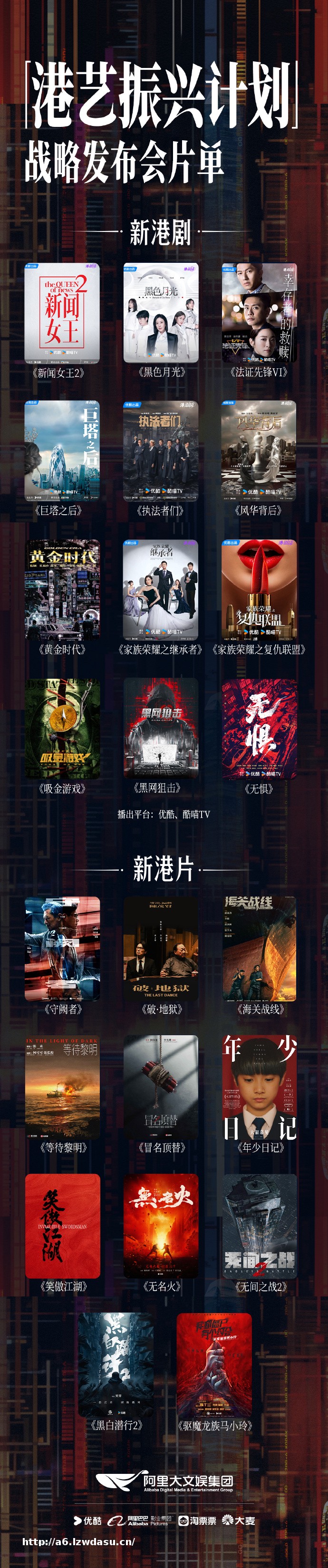4月17日,在香港文体旅*、**驻港联络办宣文部、**广电总*港澳台办公室、**电影*、上海市广电*的见证下,阿里大文娱发布“港艺振兴计划”。阿里大文娱董事长兼CEO樊路远宣布,未来5年将在香港剧集、电影、演出和青年人才培养四大领域投入不低于50亿港元。