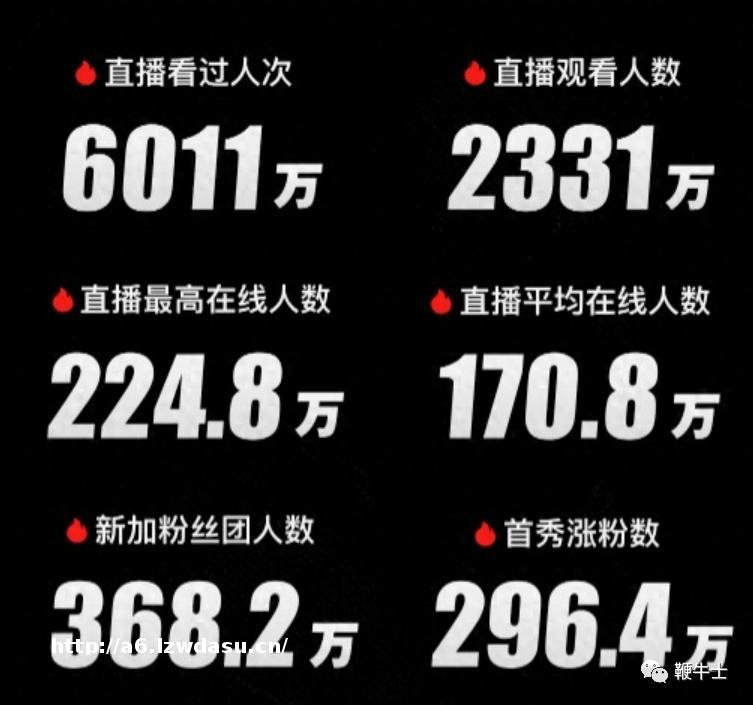 8月23日,旭旭宝宝在**3个小时的**首秀,观看人次达到6011万,**观看人数突破2331万,******人数达到224.8万,创下多项**新纪录。