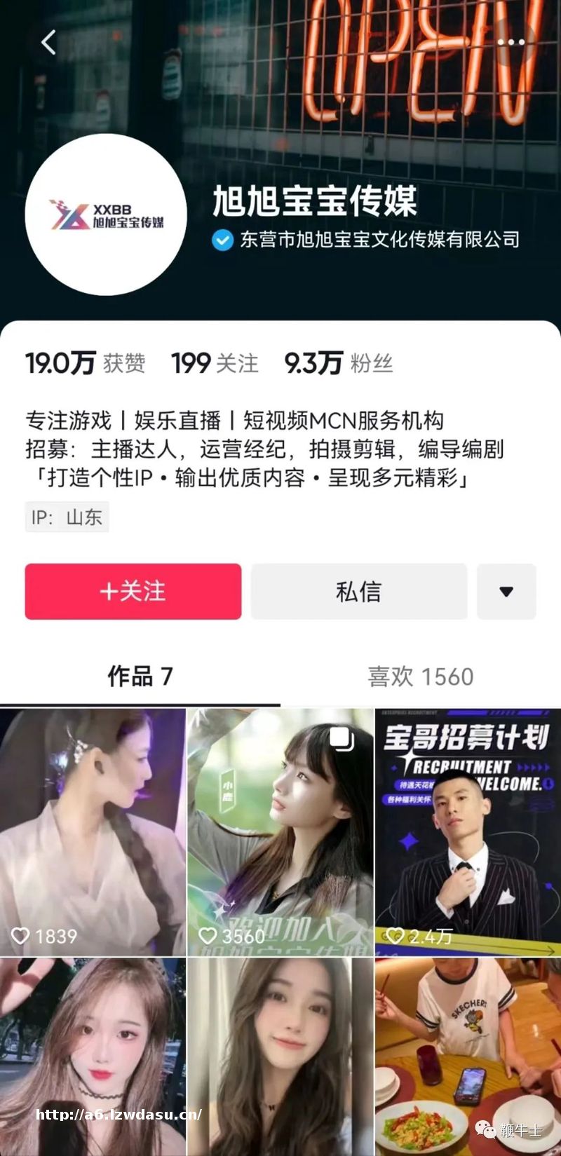 目前该公司在**的账号旭旭宝宝**拥有9.3万粉丝,公司介绍称:专注游戏、****、短视频MCN服务机构。