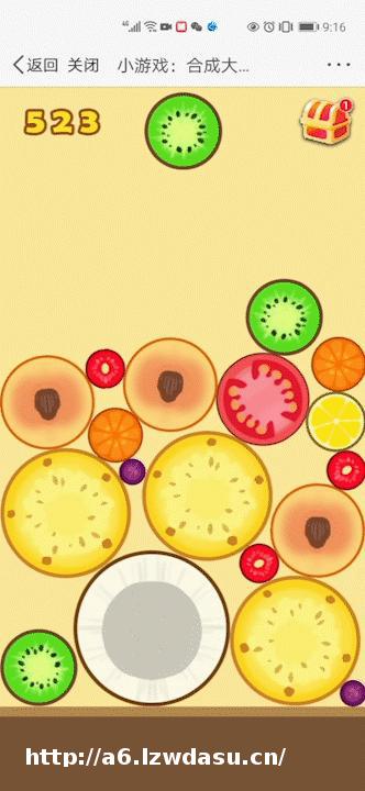 尽管界面有所不同,但游戏核心玩法与《合成大西瓜》大同小异,玩家需要通过移动水果元素,使其在合适的位置下落,碰撞到框中已有的同类水果,即可合成更高级水果,并获得对应的分速增长。在这款游戏中,只要玩家得分超过3000,即可算作“成功通关”,通关后游戏将继续进行,直到堆积的水果填满框顶,此轮游戏才结束。