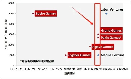 除了 2024 年 5 月至 2025 年 2 月间发生多笔融资**,土耳其游戏相关企业的融资**在 2025 年 1 月尤其集中,共发生 3 笔。