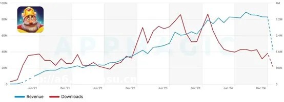 此外,但与很多游戏**是投团队还是有些不同,有不少产品已经跑出了一些成绩,例如 Agave Games 的「Find The Cat」DAU 在 2024 年 11 月就突破 100 万大关,Grand Games 的「Magic Sort!」在 2025 年 1 月总流水就已经跻身混合休闲类游戏 Top 16,最近 30 天流水已突破 200 万美元。