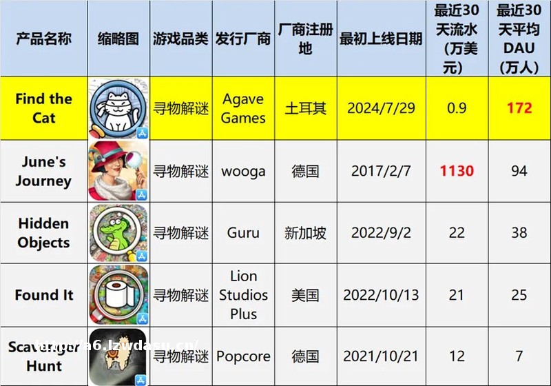Agave Games 旗下的「Find The Cat」是目前 DAU(最近 30 天平均值)**的寻物解谜游戏,ai
