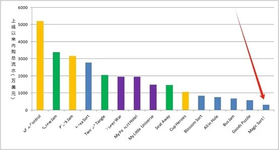 公司旗下分类游戏「Magic Sort」在新冠**奇迹爆红的超休素材“分颜料水”基础上做 IAP 变现跑出成绩。