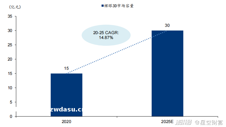 预计今年的眼3D行业**规模为9.4亿元左右,未来随着**规模的增长,两年后市场容量将突破30亿元,复合增长率接近15%,属于典型的小而美的市场。