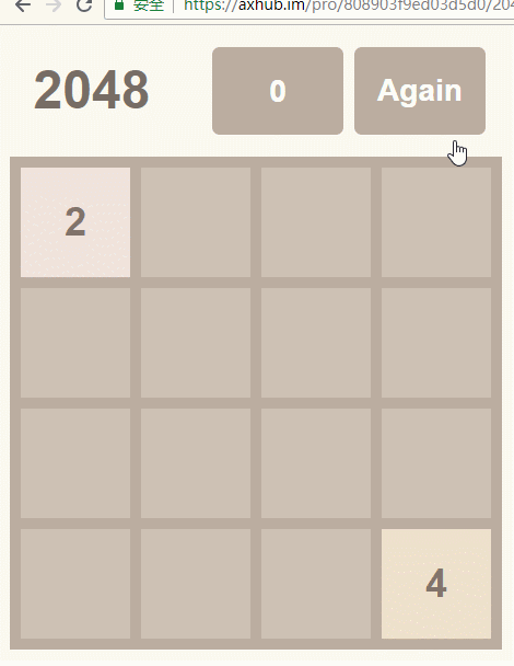结束:凑出“2048”或滑动结束时没有空余的位置供新的数字方块生成时,游戏结束。