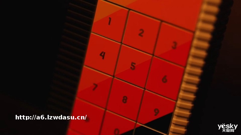 在机身正面屏幕左侧,从上到下设计了三个交互按键/按钮。最上方是一个黑色旋钮,中间是常规的方向按键,最下方则是一个类似于轨迹球的设计,三个按键均设计有环绕灯带。屏幕两侧还设计了四枚小按键分别是“设置”“分数/生命值”“选择”和“开始”。