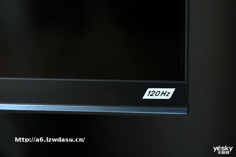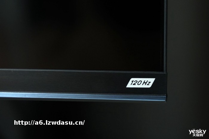 前面板有“点翠蓝”装饰条,取于自然界翠鸟的色彩,灵动的自然之美。右下角还有120Hz的产品功能标识。