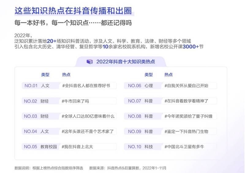 近日,其中,知识垂类下,#牛市回来了吗、#全球人口达80亿意味着什么 两条财经内容登上2022**十大知识类热点。